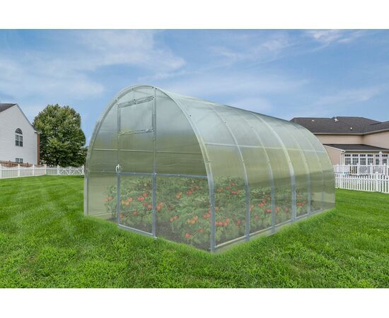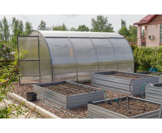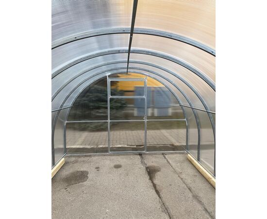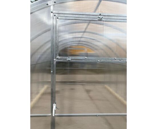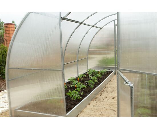 Siltumnīcai var būt dažāds garums, atkarībā no pircēja vēlmēm (4, 6, 8, 10….). Nepieciešamais garums tiek sasniegts ar siltumnīcas pagarinājumu ( + 2m). Bāzes komplektācijas siltumnīcas pārklājums – augstas kvalitātes polikarbonāts “Greenhouse”. Kā arī piedāvājam polikarbonātu “Standart” un “Premium” klases. Siltumnīcas karkass izgatavots no cinkota tērauda kvadrāt caurules (40 x 20 mm). Siltumnīcas montāža tiek veikta ar skrūvju un uzgriežņu palīdzību. Siltumnīcu var uzstādīt uz pamatnes, vai arī ierakt T-veida kājas gruntī. Siltumnīca ir aprīkota ar divām durvīm , abos siltumnīcas galos. Durvis ir aprīkotas ar vēdināšanas lūku.