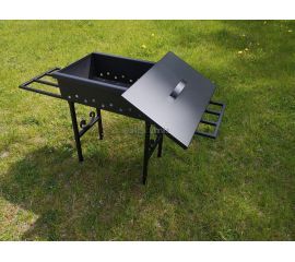 Barbecue tērauda 3 mm Metāla malas: ir (no vienas pusēs) Vāks: Ir Pulverveida termokorekcija Noņemamās kājas Varat arī veikt gravējumu Ražots Latvijā garums 650 mm platums 320 mm dziļums 200 mm augstums 760 mm