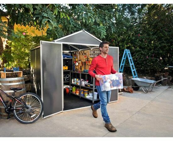 Nostipriniet savu instrumentu novietni/glabātuvi pie zemes, izmantojot komplektā iekļauto enkurošanas komplektu, lai no savas stingrās konstrukcijas iegūtu maksimālu labumu, paaugstiniet tā stabilitāti un uzlabojiet noturību pret laikapstākļiem. Var nostiprināt pie lielākās daļas cieto virsmu, piemēram, koka, betona vai metāla.