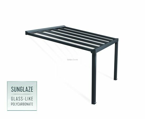 - Praktiski nesalaužami, 4 mm biezi monolītā polikarbonāta jumta paneļi, kas ir 100% pasargāti no UV stariem pasargā no ultravioletās gaismas, krusas un sniega