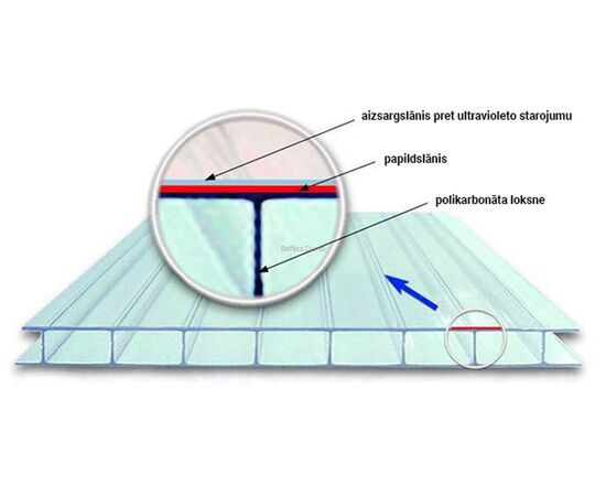 Krāsains polikarbonāts tiek ražots izmantojot speciālas pigmenta granulas izmantojot ekstūzijas metodes. Produktam piemīt piesātināta krāsa, tas tiek panākts ar speciālo plāksnes savienojumu metodi pie garenvirziena ribām. Krāsainam polikarbonātam piemīt tādas īpašības, kā izturība pret mehāniskām iedarbībām, ķīmiskām iedarbībām un UV starojumu. Bet vienlaikus nodrošina labu gaismas caurlaidību un siltumizolāciju. Visas augstāk minētas īpašības, materiāls saglabā temperatūras režīma no -40 līdz pat +120 C. Polikarbonāta loksnes biezums ir no 4mm līdz 16mm.