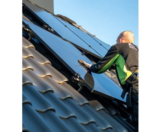 Pievienojiet saules enerģijas paneļus ar universālajām paneļa skavām. Novietojiet gala vāciņus, un viss ir kārtībā!