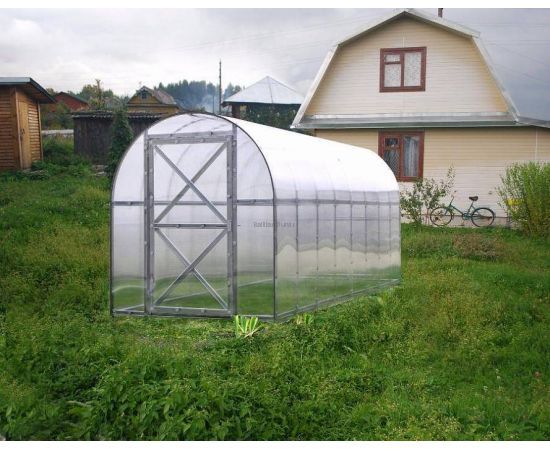 «Перчина М Плюс» - небольшая компактная теплица, рассчитанная на две грядки. Покрытие – сотовый поликарбонат, устойчивый к перепадам температур и прекрасно удерживающий тепло. Ширина теплица 1,5 метра, высота – 1,75 м.